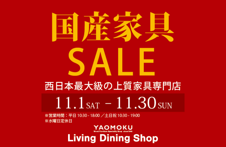 ヤオモクが取り扱う優良家具メーカーの厳選された国産家具を期間限定の特別価格にてご提供いたします。是非このお得な機会にダイニングテーブルやソファをご検討くださいませ。